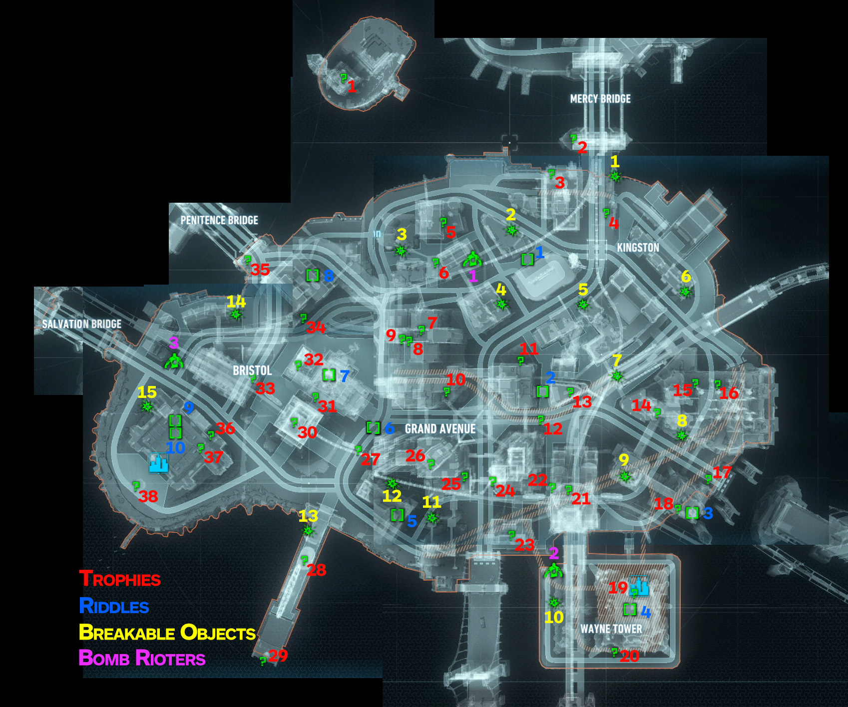 Arkham Knight Bleake Island Riddler Trophy Numbers : Steam Samfunn Veiledning Batman Arkham Knight Riddler Trophy And Collectibles : Use the batmobile's winch to pull out a panel containing 3 question switches, and hit.. Use the batmobile's winch to pull out a panel containing 3 question switches, and hit. Following his defeat and incarceration at the hands of batman. Deathstroke became a mercenary soon after the experiment and rapidly gained a reputation as one of the world's greatest assassins. Look for the trophy on the side of a building as you cross perdition bridge from bleake to founders' island. Originally a soldier in the u.s.
